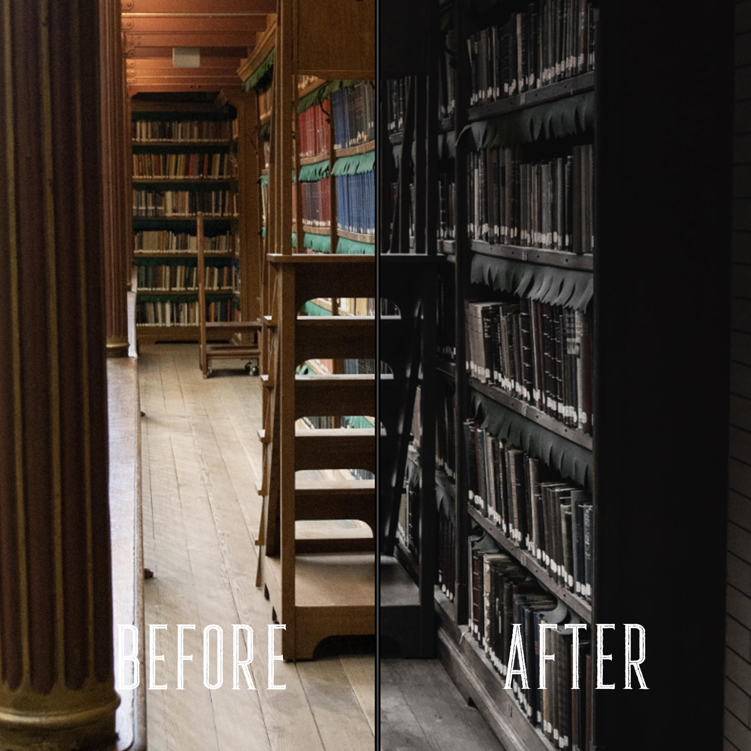 14 Premium Lightroom presets designed to give a dark and moody feeling inspired by ancient libraries and fantasy art pieces. Create a dark, crisp, saturated style perfect for turning even the most colourful churches, universities or libraries into a dark and moody academia style.