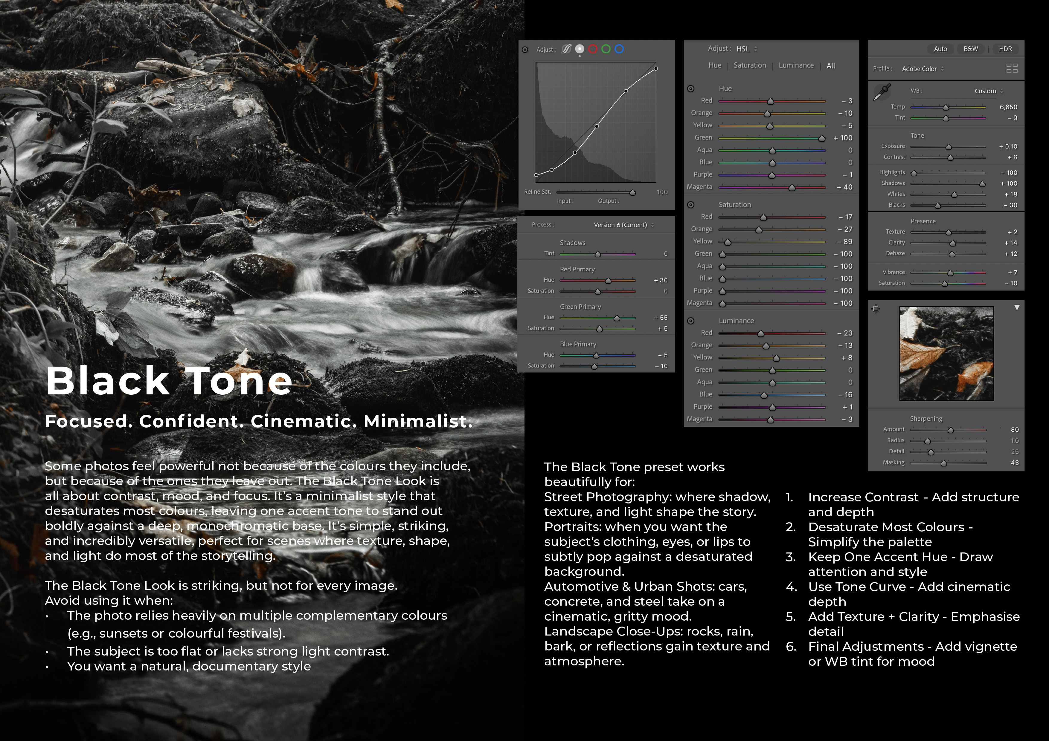 Full guide on the various tools in Lightroom and how/why to use them in your workflow. Learn what happens when you move those sliders to better influence your editing decisions. No more guess work, embrace the editing journey to create better photos.